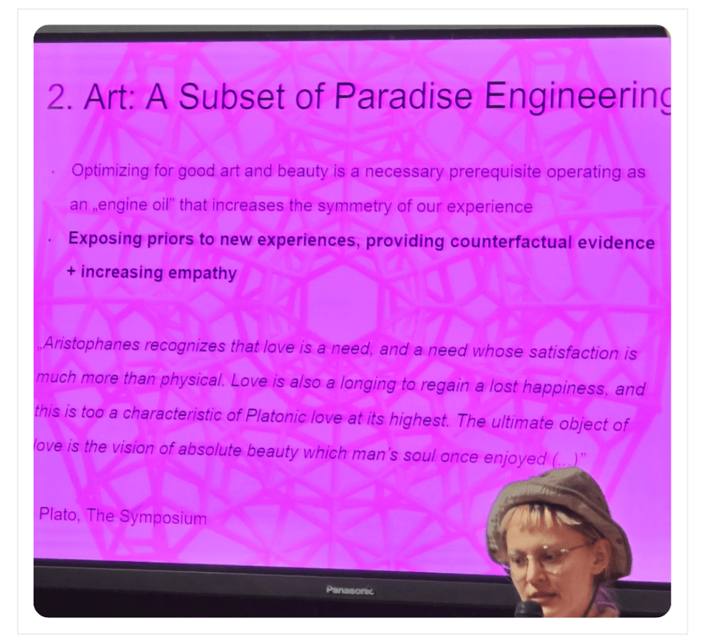 Hi! I’m Beata (she/they), a deeply curious Orphico-Pythagorean vibe realist actively working at the intersection of natural sciences, science fiction, philosophy, mental health, mysticism, and the arts. I seek connections across domains—physics to consciousness, psychiatry to mythology—a mind that wants coherence in the largest possible sense. Drawing on my personal experience with ontological shock and emergent phenomenology, my research aims to understand what love is and how we can tune ourselves to a more equanimous and compassionate key by working with our attention—a “Qualia tuner”.