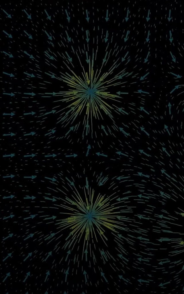 this is related to conformal cyclic cosmology by penrose. the point around which vectors are moving represents a black hole – depending whether it’s the side where fluid seems to flow in our out. the point is either a source or a sink. (image at the end of the post)