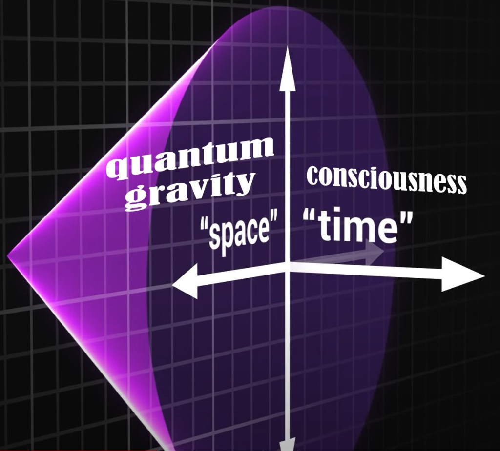 Just like time is perpendicular to space, so can consciousness be perpendicualar to quantum gravity (QG). What if the mystery “graviton” is the peak of a consciousness vector parsing the branchial space?